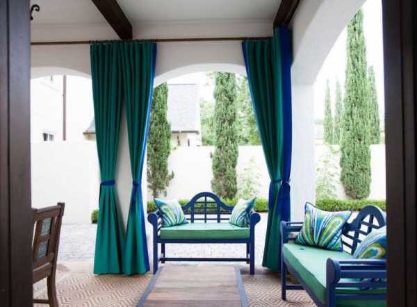 - Следуйте правилам: яркие обои требуют использования приглушённых штор; бирюзовые шторы выгодно смотрятся в сочетании с подушками, покрывалами или мебелью.