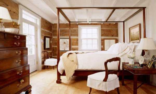 Красное дерево найдет неожиданное применение в стилистике барокко и классики. Розовые вертикально расположенные доски для стен, изображенные на покрытии, дополнят спальню в стиле шебби-шик.