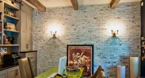 Сюда подойдут обои с кирпичным принтом светлых оттенков жёлтой палитры или с имитацией выбеленного кирпича. Желательно использовать покрытия с выраженной фактурой, которая за счёт трещинок, неровностей и потертостей реалистично сымитирует грубоватую кирпичную кладку деревенского жилища.