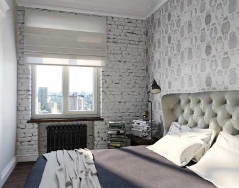 Обои под кирпич в интерьере спальни