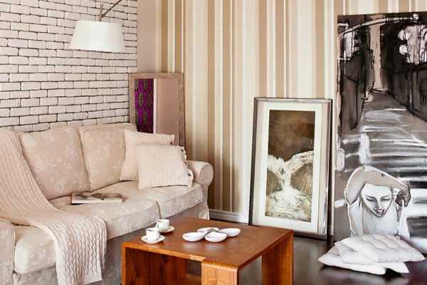 Что касается других материалов, то обои под кирпич лучше всего комбинировать: