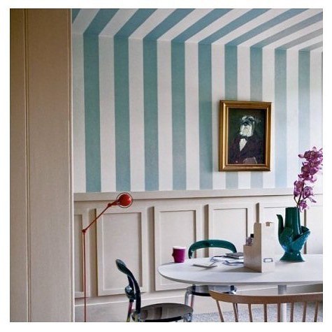 Т.е. увеличение пространства получается в направлении полос, например, для визуального увеличения низких потолков следует использовать обои с вертикальными полосками. Кстати, максимальный эффект визуального вытягивания можно получить, если: