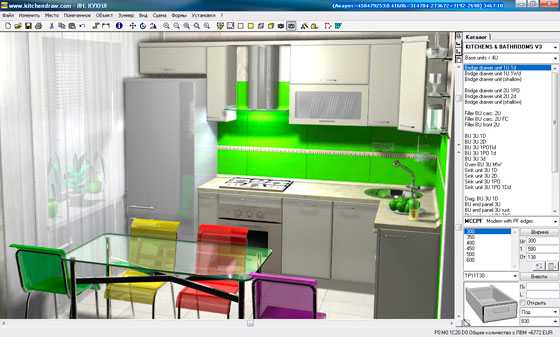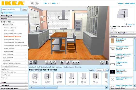 В помощь пользователю богатый каталог различных объектов: от мебели и предметов до текстуры и оттенков.