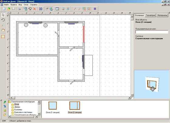 В 2D режиме Вы самостоятельно разработаете планировку, займетесь возведением стен и установкой дверей и окон, сможете добавлять перегородки, изменять размеры, форму стен и комнат (они могут быть изогнутые или угловатые).