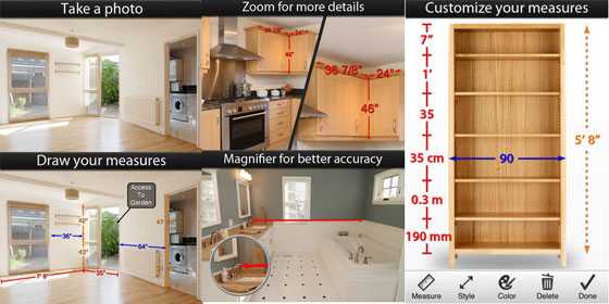 Оригинальность приложения в том, что можно прийти с планшетом или смартфоном в магазин, сфотографировать интересующие объекты: мебель сантехнику, кухонную мойку или плиту, стиральную машинку и прочее. Записать параметры. И потом внести картинку, указав параметры, на план комнаты.