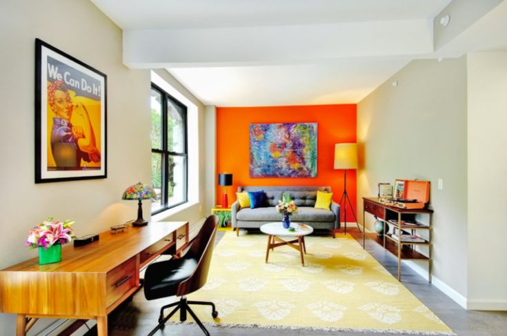 Исходя из описания и психологической характеристики, уместен оранжевый цвет в интерьере комнаты общего пользования – прихожей, гостиной, кабинета, кухни. Вы создадите обстановку, настраивающую на интересные беседы, творческую активность и положительные эмоции. Ярко-оранжевый – идеальный акцент, более спокойные оттенки – замечательный общий фон. Его простота обманчива.