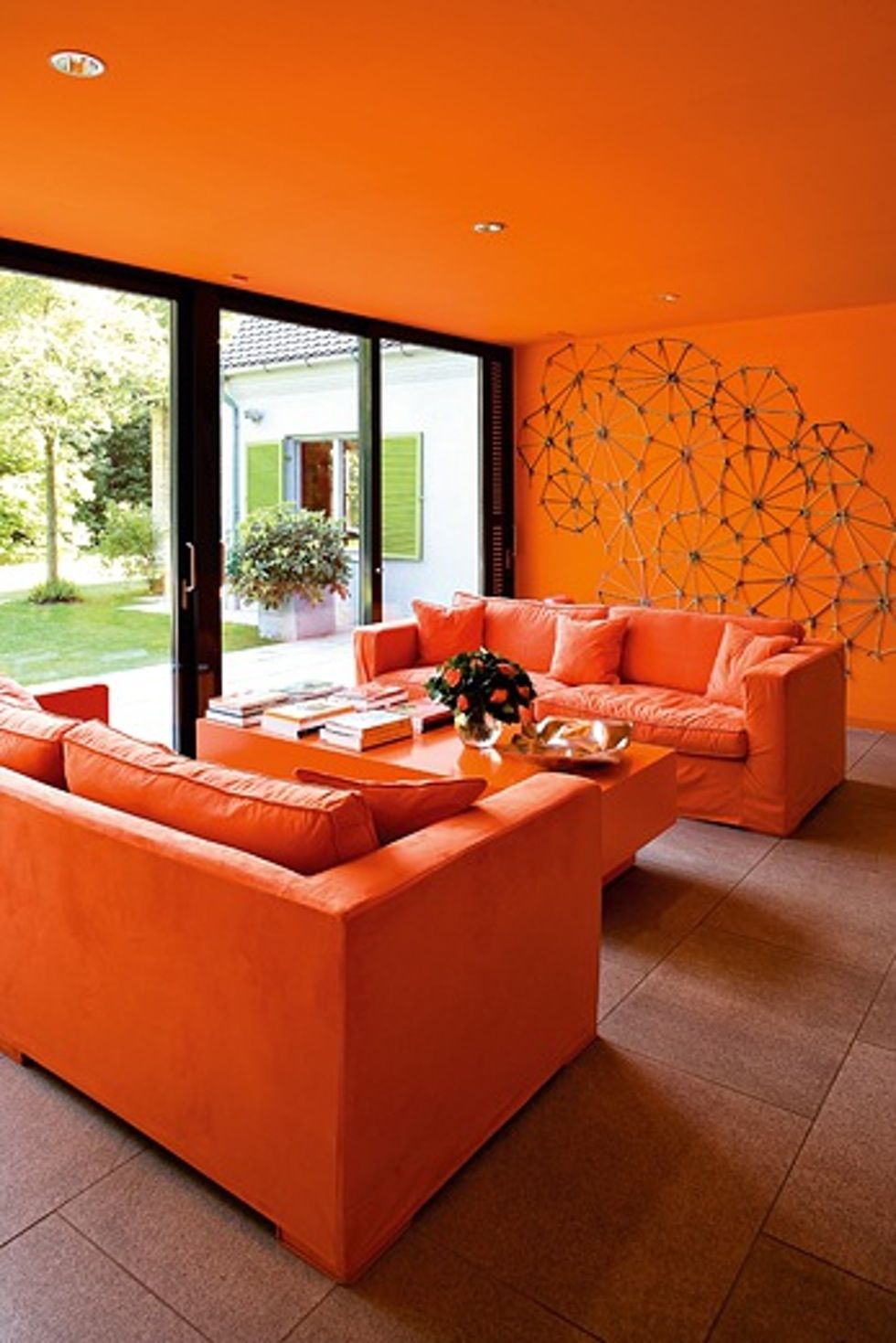 Этот оранжевый интерьер действительно производит мощное впечатление.