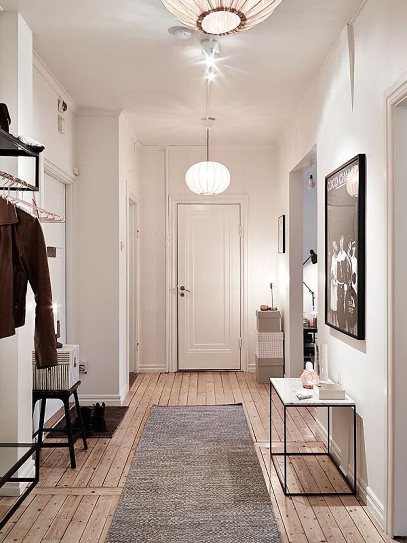 - Осветите конец коридора, добавив светильник, который может быть в виде настенного, настольного или напольного светильника. Это поможет привлечь внимание по всей длине коридора и избежать жуткого присутствия узкого и грязного пространства.