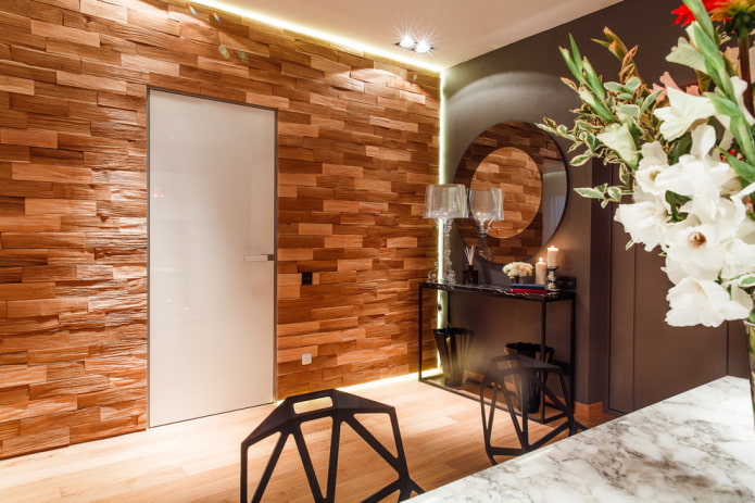 Если камень использовать для облицовки стен в прихожей, то освещение должно быть на обоих стенках.