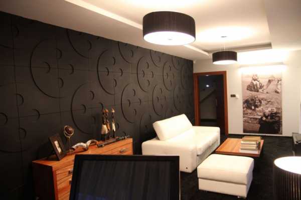 Для жилых комнат лучше использовать натуральные панели из ткани, гипса, дерева или ДСП, МДФ. В гостиной можно сделать акцент на мягких или 3-д панелях. Для классики подойдут из красного дерева вместе с белыми стенами и бархатными шторами. Современный интерьер предпочитает кожаные, 3-д панели.