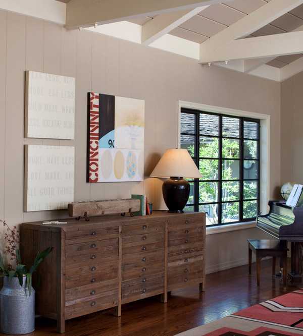 Панели и покраска сочетаются в одном цвете, создавая единую композицию. Также бывают в одном тоне, в контрастном сочетании. Для работы внутри помещения подходят акриловые и латексные краски, которые без запаха и быстро сохнут.