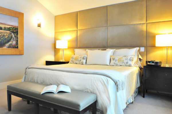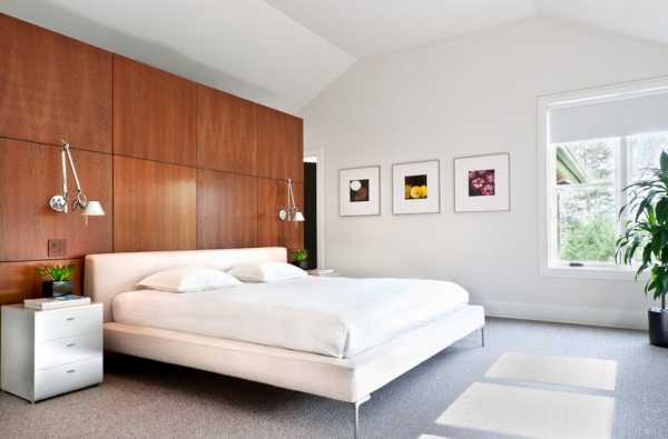 В спальню подойдут тканевые, которые станут акцентом или служить изголовьем, зеркальные панели для увеличения пространства узкой спальни. Также будут уместны варианты из дерева или МДФ. Сочетаются с обоями, краской, фотообоями.