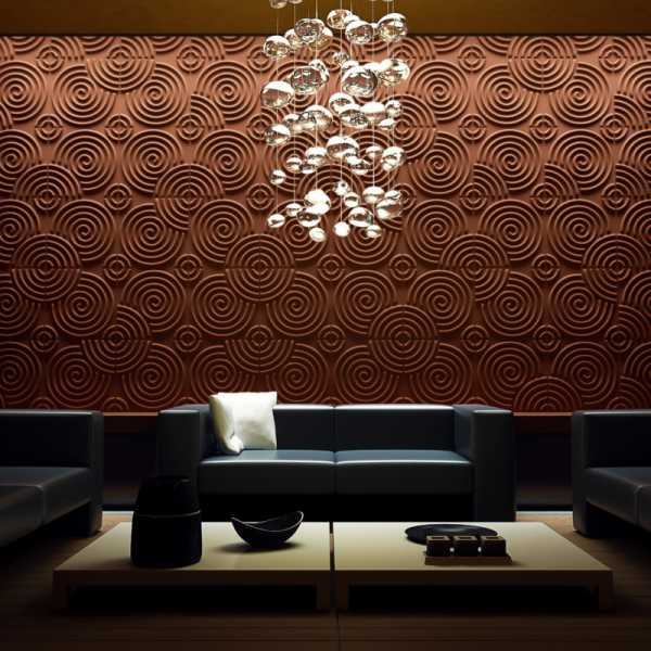 Создают уникальный интерьер за счет объема и 3-d эффекта на стенах. Текстура окрашивается разными оттенками (глянцевыми или матовыми) акриловыми красками, или обтягивается шпоном.