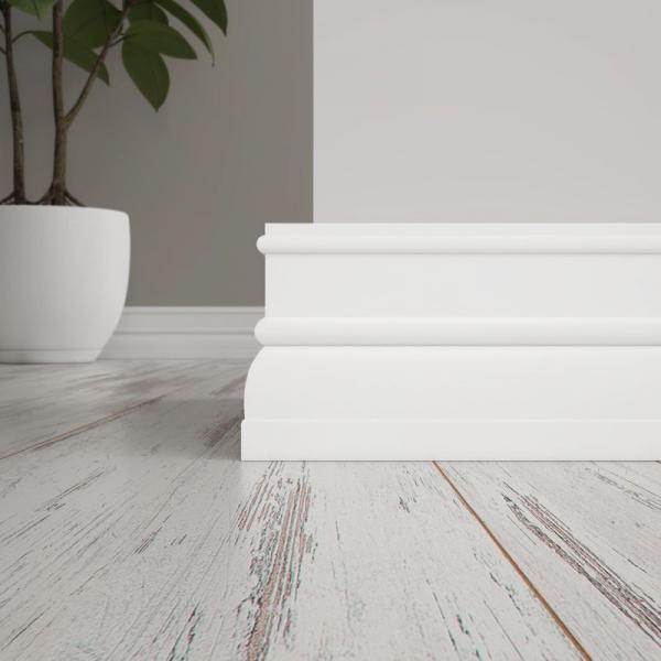Высокими считаются профили от 10-12 см. При подборе размера учитывайте также функции, которые плинтус будет выполнять: например, маскировать дефект по нижнему краю стены или закрывать проводку. Высокие модели можно найти у многих известных брендов: Orac Decor, «Идеал Деконика», Arbiton и др.