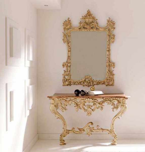 Не обойтись и без огромных зеркал в изящных и богато декорированных рамах. Если позволяют размеры прихожей, в ней можно поставить несколько больших ваз (с цветами или без), а также повесить картины на стенах.