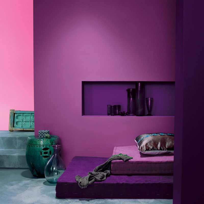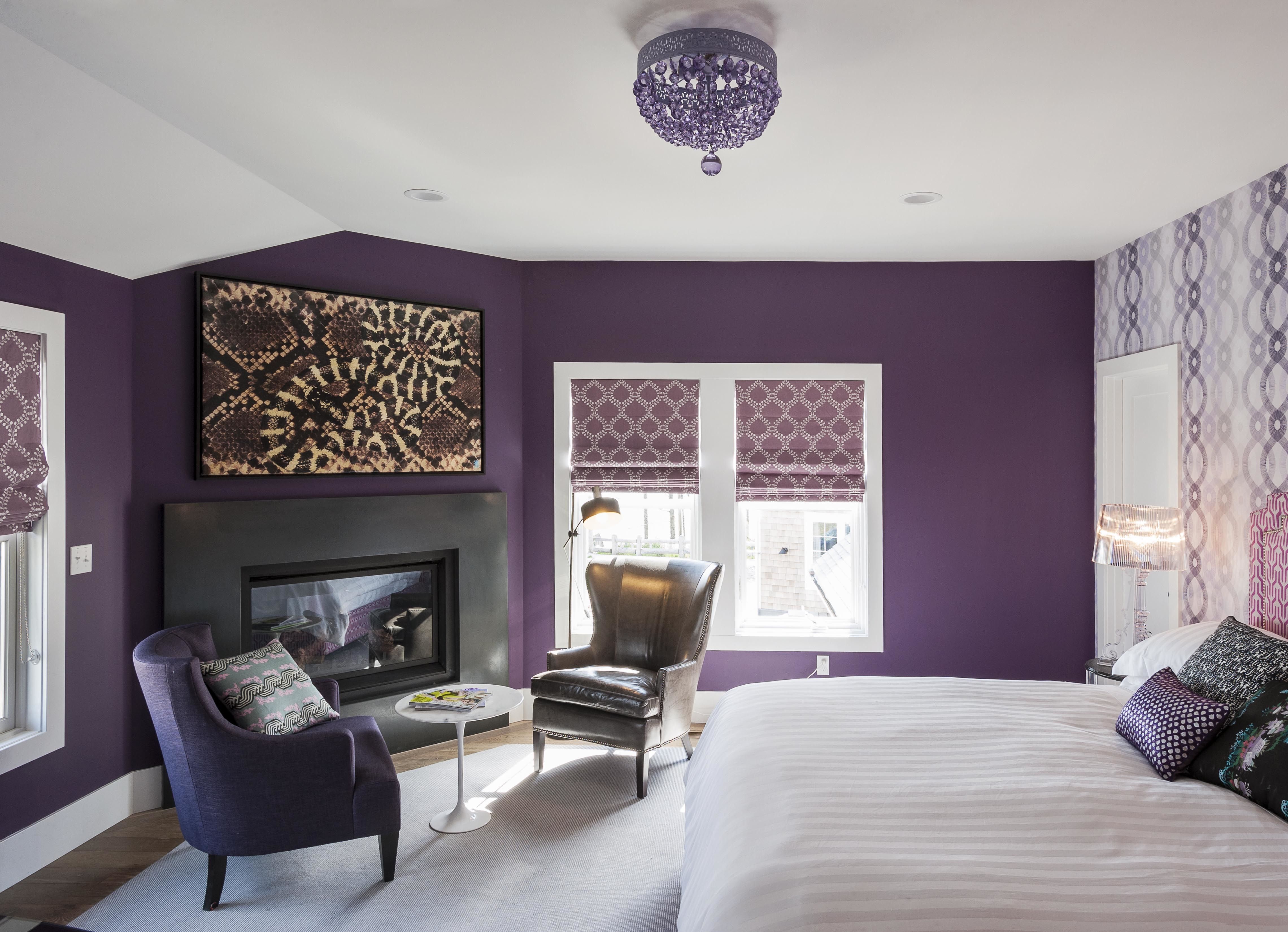 Фиолетовый цвет на стенах легко получить, просто подобрав пурпурную краску. Ни один из доступных оттенков не удовлетворит ваш вкус? Вы также можете смешать красный и синий в правильных пропорциях, чтобы получить желаемый оттенок. Вы также можете выбрать фиолетовые обои.