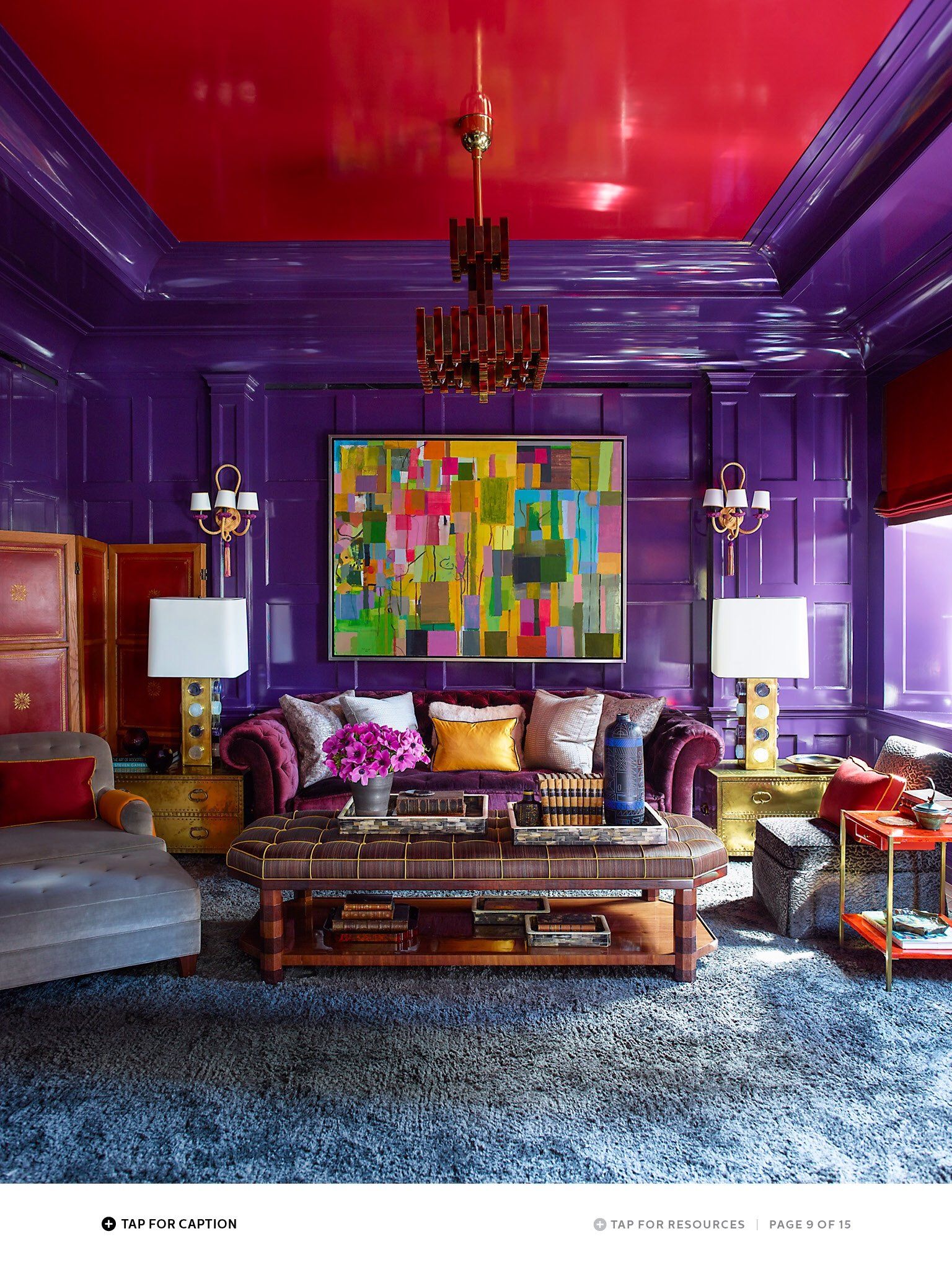Смешивая более глубокие оттенки пурпурного и розового, вы можете добавить немного красных, чтобы придать пространству романтическое или интимное ощущение.
