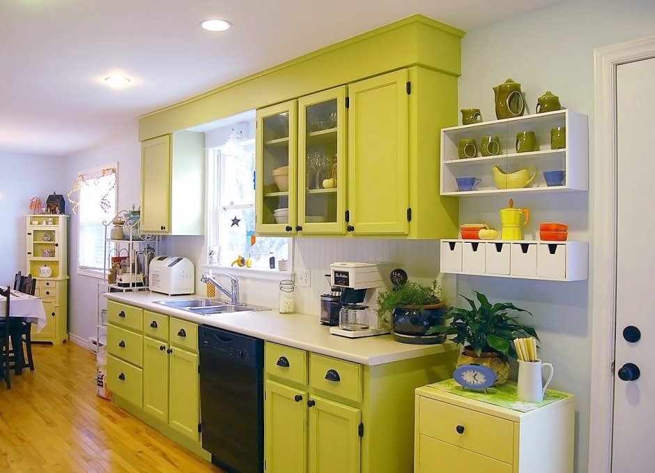 Яркий фисташковый цвет в интерьере кухни