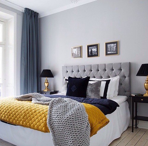 Декорируя спальню — можете делать все, что хотите. Что бы ни делало вам комфортным! Мы не хотели вдаваться в серебряные и золотые цветовые схемы в этом списке, но не могли устоять перед великолепным серебристо-белым дизайном, в котором золотая подпись на картинке действительно выделяется!