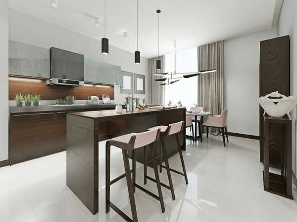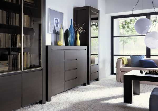 Если нужно придать интерьеру современный шик, стоит выбрать шоколадную мебель в компании с белой глянцевой мебелью.