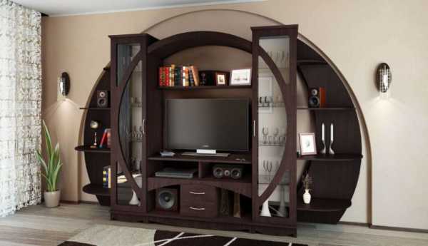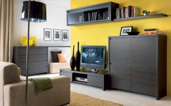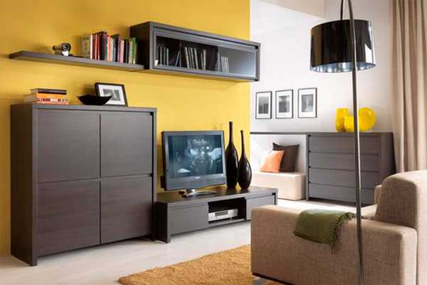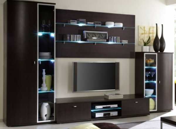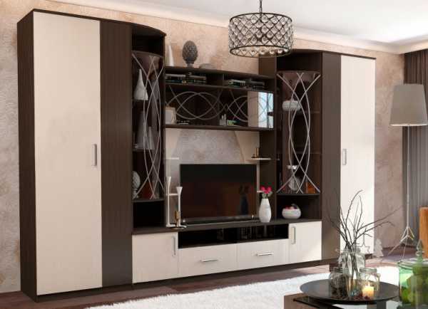 Отличное решение – это двухцветная мебель, сочетающая венге с белым. Если гостиная просторная, не бойтесь сочетать венге с темными цветами стен – это сочетание может выглядеть достаточно стильно.
