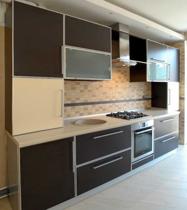 Глянцевые фасады будут идеальной парой для темного шпона. Контраст между гладкой, глянцевой поверхностью в светлом оттенке и темно-коричневой окраской древесины выглядит очень элегантно.