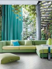 Яркие чистые тона — изумруд, «бильярдное сукно», киви, петрушка, — хороши как средство для создания непринужденной, тонизирующей атмосферы «весеннего сада», «южного курорта», «азарта игорного дома»