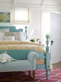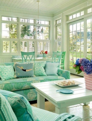 Хорошо смотрятся комбинации аквамаринового и белого, карибского и светло-коричневого.