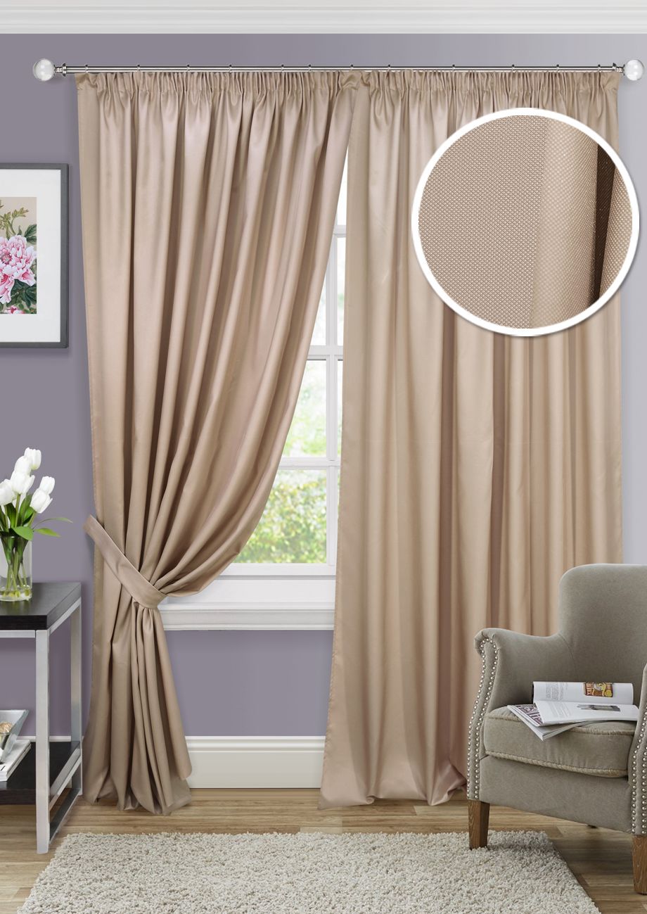 Если метраж комнаты не позволяет повесить тяжелые шоколадного цвета шторы, стоит рассмотреть варианты светло-коричневых штор, например, бежевых оттенков.
