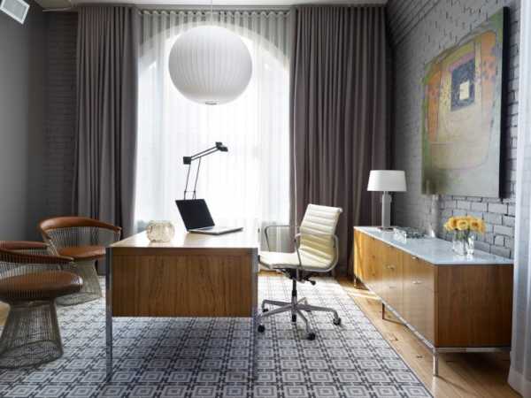 Данный способ хорошо сочетается и подходит для любого вида помещения. Главную особенность интерьера придают светло-серые шторы, которые сочетаются как для рабочего кабинета, так и для спален комнат, придавая помещению спокойствия и безопасность.