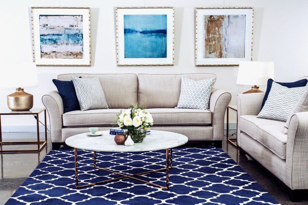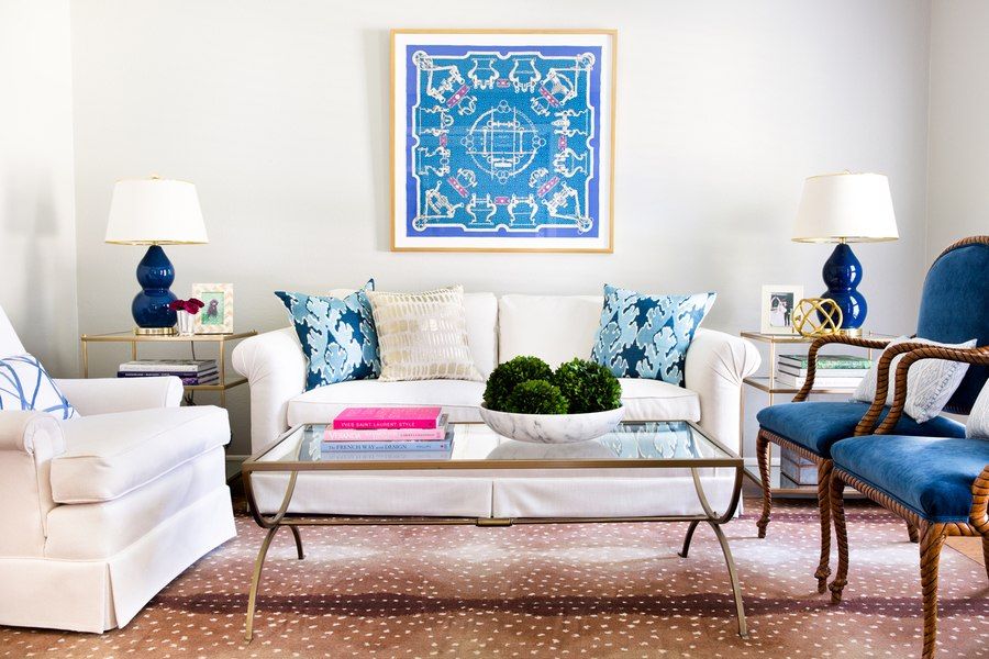 Использование синего ковра в интерьере гостиной