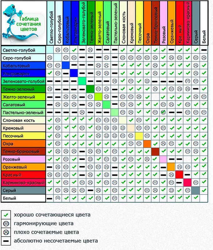 Таблица сочетаемости цветов в интерьере
