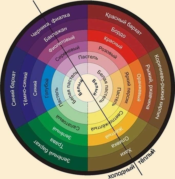 Все цвета делятся на холодные, тёплые и нейтральные. Их выбор является достаточно непростым делом, которое затрудняет работу даже профессионалов. Именно поэтому они используют цветовой круг и специальные таблицы. Однако необходимо помнить, что в пределах одного помещения допустимо сочетать не более 3-5 цветов.