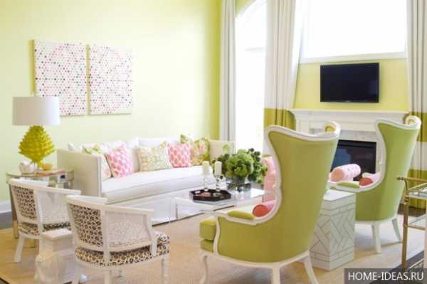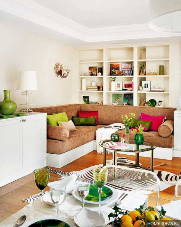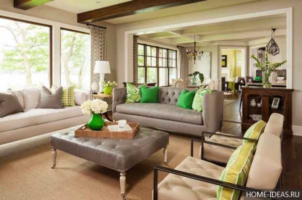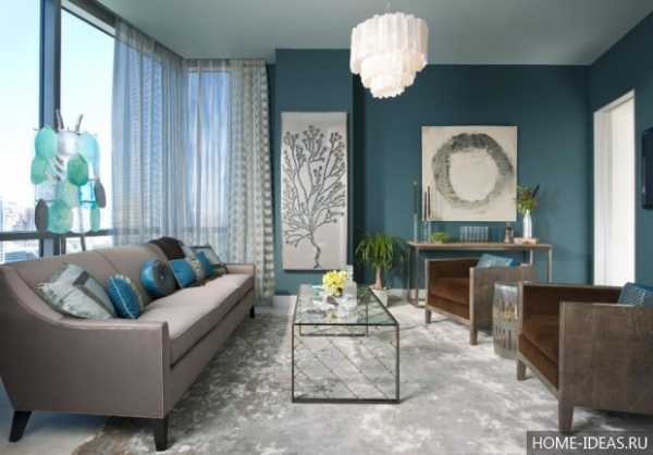 Эта мода пришла к нам из западных стран, где принято общий оттенок помещения делать в нейтральной гамме, а чтобы подчеркнуть стиль, выбирают яркие оттенки — зеленый, светло-бирюзовый, красный или темно-шоколадный — и добавляют детали в этих цветах — например, диванные подушки, вазы или картины. Эти цвета прекрасно сочетаются.