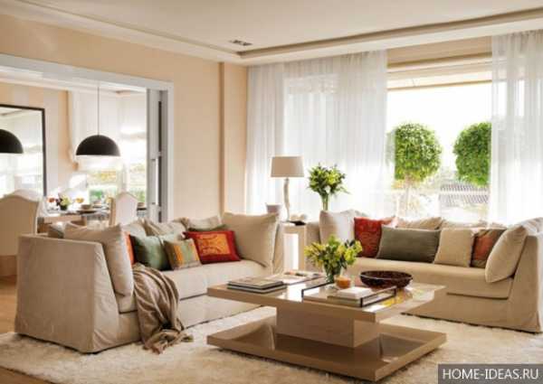 Беж в гостиной подходит для классического стиля в интерьере, прованса, кантри, минимализма, модерна. Используя цвет, стоит придерживаться нескольких правил: