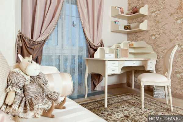 Хороший вариант для детской комнаты, а также для спальни девочки-подростка. Такое сочетание цветов создает теплый и в тоже время успокаивающий эффект. Можно использовать контраст, когда противоположные стены красятся в одинаковые цвета. Если хотите добиться максимального эффекта, не забудьте сделать акценты на светлую детскую мебель.
