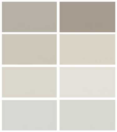Промежуточными являются серо-бежевые полутона. Такие оттенки часто называют теплым или французским серым. В англоязычной среде за этим цветом закрепилось название «грейж» (grey + beige). Грейж спокоен и тих. Он действует расслабляюще и умиротворяюще.