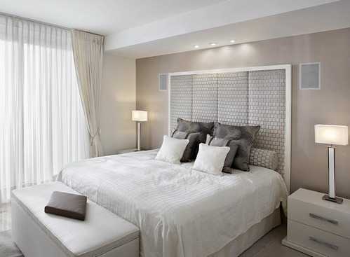 Чтобы усилить эффект полного смешивания цветов, серые элементы дополняйте бежевым декором, а бежевые — серым. Приставьте к кремовому дивану дымчатое кресло. Положите серые подушки не бежевую софу. Застелите кровать с жемчужным изголовьем покрывалом цвета слоновой кости. Одним словом, чередуйте цвета.