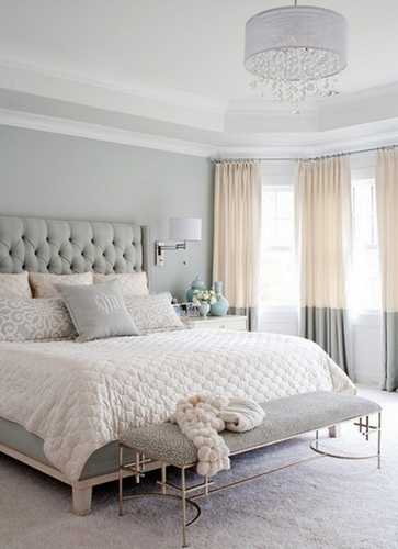 В тандеме «серый + бежевый» нет доминирования ― оттенки растворяются друг в друге. Для усиления эффекта смешивания цвета чередуют: серые подушки кладут на бежевый диван, кровать в серых тонах накрывают покрывалом цвета слоновой кости.