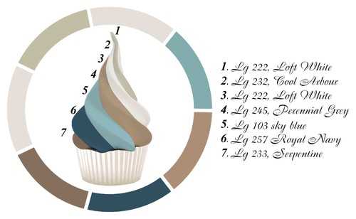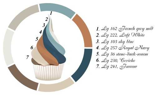 Какие цвета сочетаются с бежевым в интерьере? Покажу капкейках: сначала — смотрим цветовую гамму, а затем интерьер в этих цветах, который я нашла в качестве иллюстрации на Houzz.