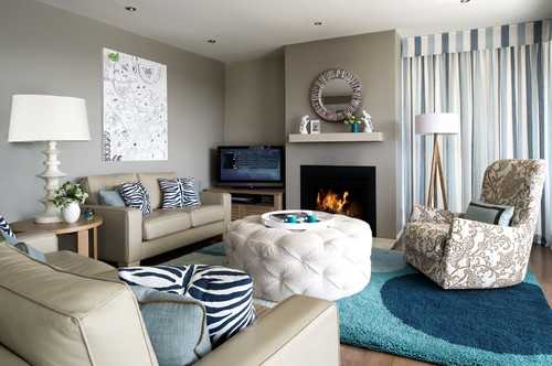 Если вам покажется, что серо-бежевый интерьер получился неопределенным и пресным — добавьте ярких пятен. Чтобы поддержать теплоту бежевого, сделайте выбор в пользу желтых, персиковых, коралловых акцентов. Для усиления прохлады серого разбавьте интерьер голубыми, бирюзовыми, серо-фиолетовыми, лавандовыми или зелеными вкраплениями.