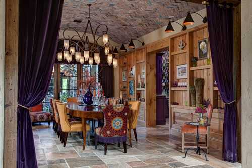 С коричневым легко играть на разных фактурах дерева, шелковых тканей, камня или кирпича, кожи.