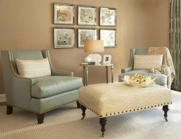 - Сочетание бежевого цвета в интерьере приносят в помещение гармонию. Если подобрать несколько оттенков бежевого — от темного до светлых, можно сделать поистине изысканный интерьер гостиных. Хорошо подойдут оливковый, белый, синий, зеленый и шоколадный.