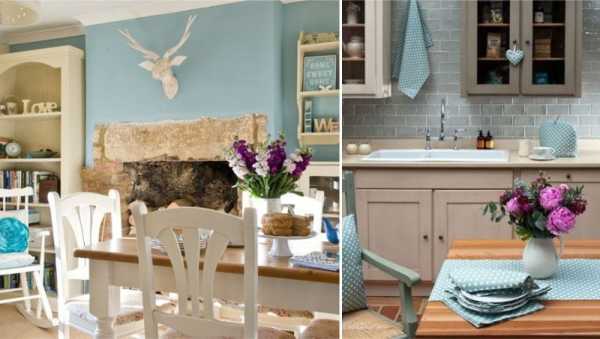 Голубой и бирюзовый сочетании с бежевым подойдут для интерьера в стиле прованс. Уместны обои и шторы с растительным рисунком, цвет которых может повторять оттенок гарнитура. Фартук в стиле прованс чаще всего покрывает плитка с аналогичным узором.