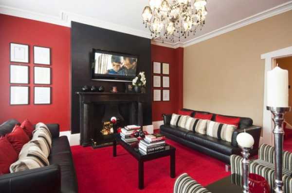 Это самое смелое сочетание, которое не всем придется по душе. Такой альянс цветов сразу оценят творческие люди, особенно художники. Хорошее решение для квартир – студий, где сочный красный добавит яркости и энергии жизни. В качестве акцентов лучше использовать золотые оттенки в отделке мебели и аксессуаров.
