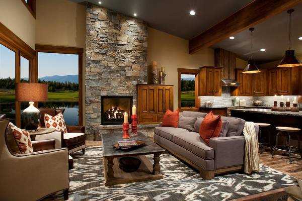 В бежевую гостиную впишется мебель из ценных пород древесины, ротанга. Атмосферно смотрятся каменные или деревянные детали из необработанного материала, металлическая отделка или украшения из бронзы, меди, серебра.