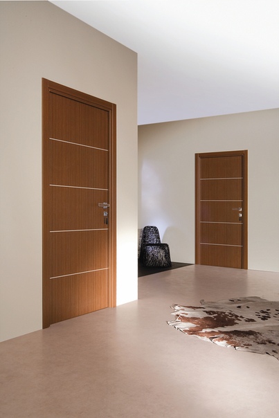 Тогда можно выбрать на двери декоративные накладки вишневого цвета. Можно и наоборот, положить на пол коврики цвета того самого розового бука. В качестве объединяющего предмета, кроме плинтуса, подойдет и розовая напольная ваза. - Если же вы планируете обставить комнату мебелью из натурального дерева, то дверь лучше сделать с привязкой именно к обстановке, а не к полу. Так как в итоге впечатление от интерьера будет складываться по серединной линии взгляда: стены, мебель, двери. При сочетании деревянных дверей и мебели из этого натурального материала, следует учесть и фактуру древесных волокон.