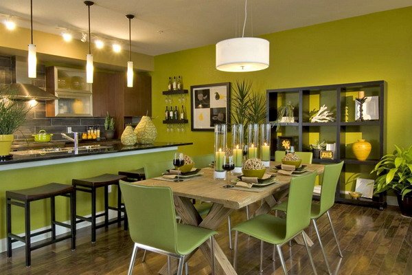 При этом стены, стулья и обеденную зону подбирают в сером цвете. Декор может быть умеренным, но лучше от него полностью воздержаться.