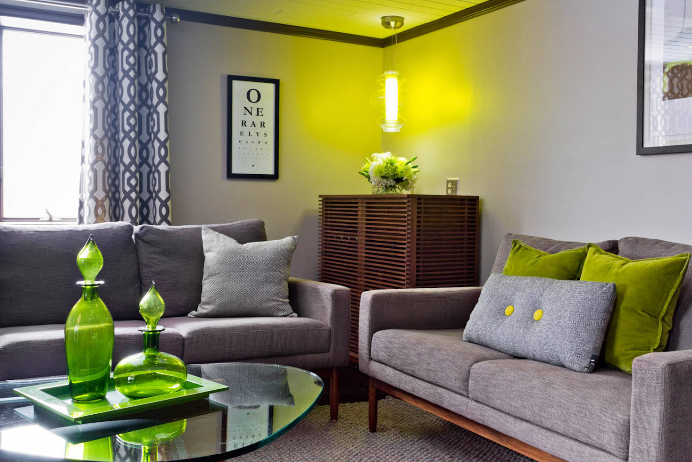Ярко-зеленый и лимонно-желтый цвета в интерьере