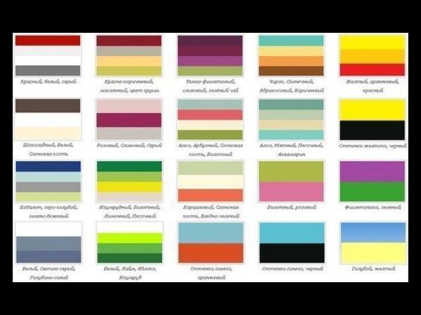 В цветовых таблицах сочетание цветов в интерьере дано в количестве пяти-шести оттенков. Использовать их надо памятуя правило. Первый оттенок — это основной цвет, второй и третий — дополнительные, остальные — акцентные. Вот так и распределяете цвета.